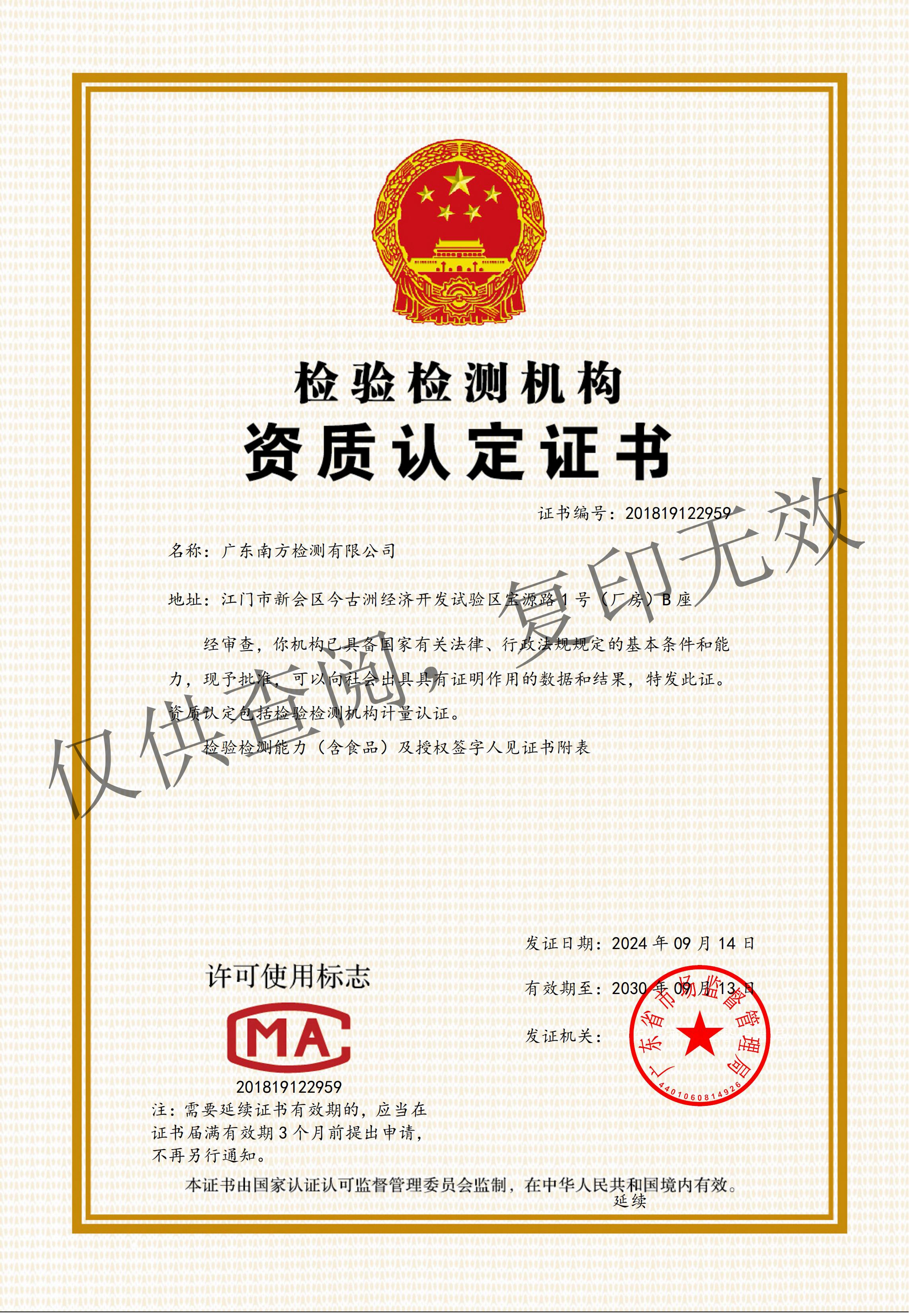 资质认定证书